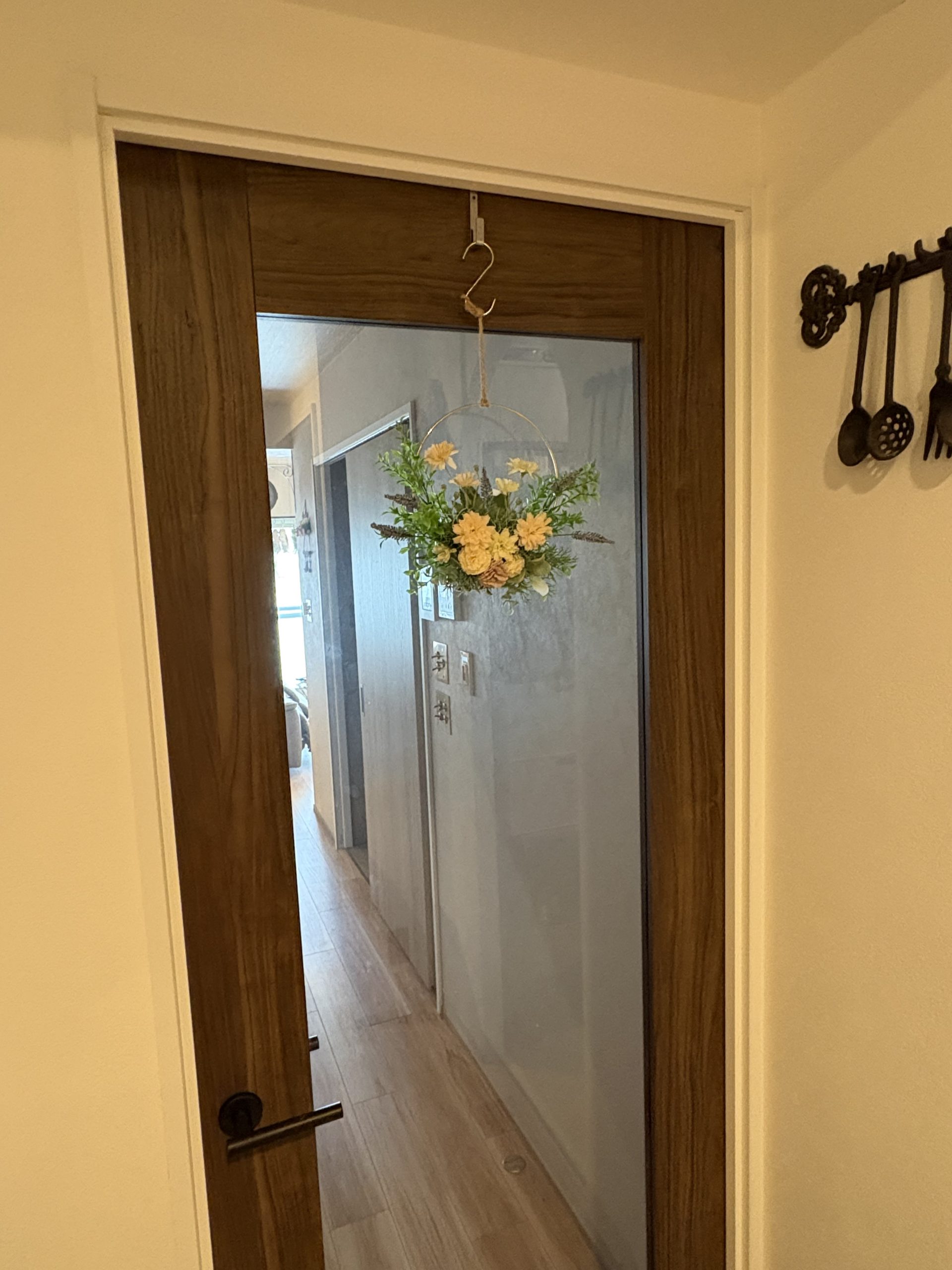 横幅30cmのスマートなサイズ感は、玄関ドアはもちろん、お部屋のメインウォールやドア飾りとしても最適です。ゴールドの輝きが、日常の空間にさりげない上質さを添えてくれます。